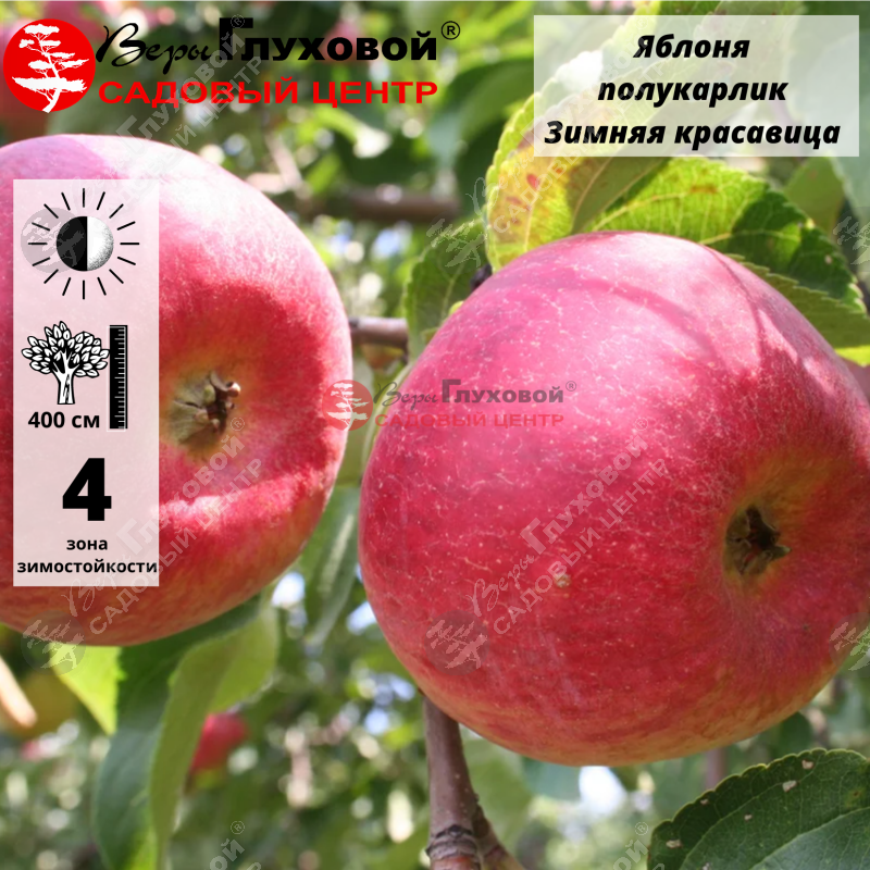 Зимняя красавица – средне зимостойкий сорт яблони. Более подробное описание, фото данного сорта вы найдете ниже. В зимний период яблоня переносит понижение температуры до 35 градусов. Сорт характеризуется скороплодным, с позднеосенним сроком созревания. Яблоня имеет смешанный тип плодоношения. Плоды среднего и крупного размера созревают одновременно. Урожайность хорошая, выше средней.