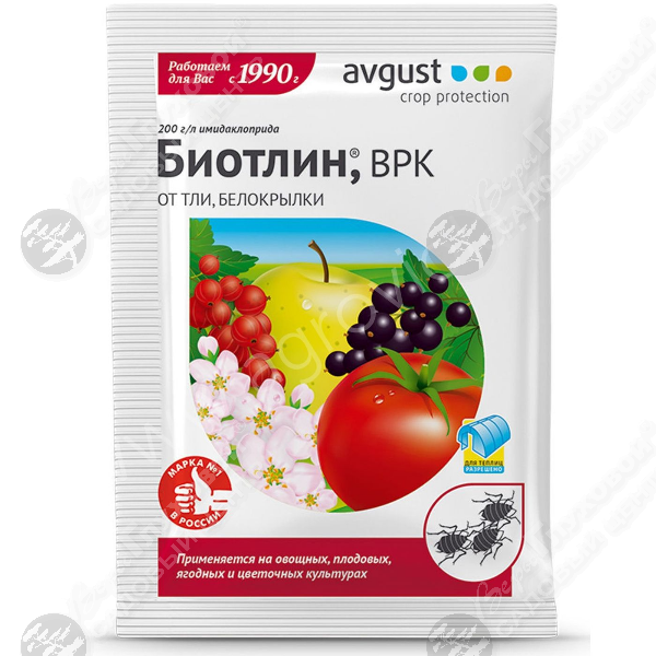 Биотлин – новый препарат для уничтожения различных видов тли на плодовых, ягодных, овощных и цветочных культурах.
